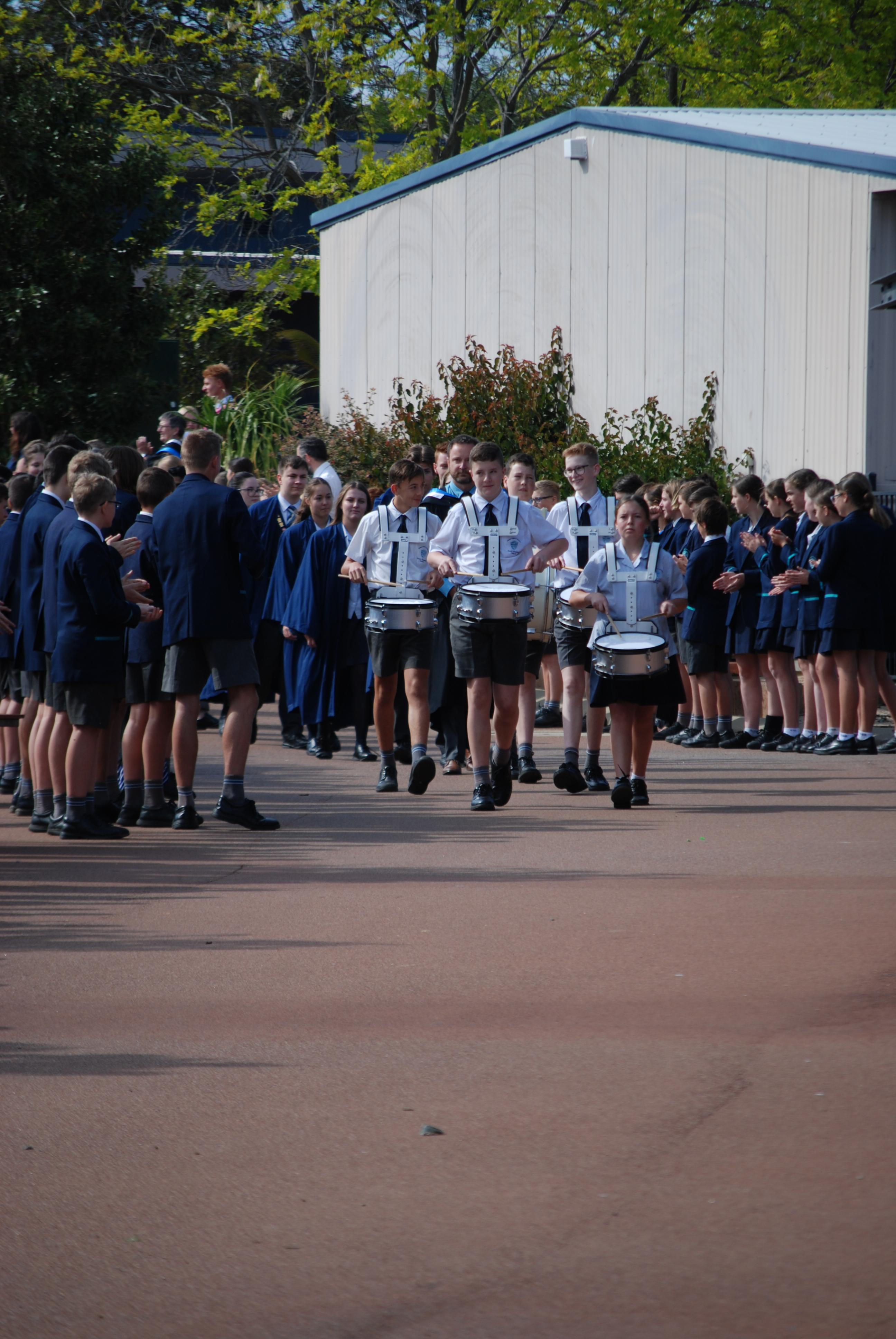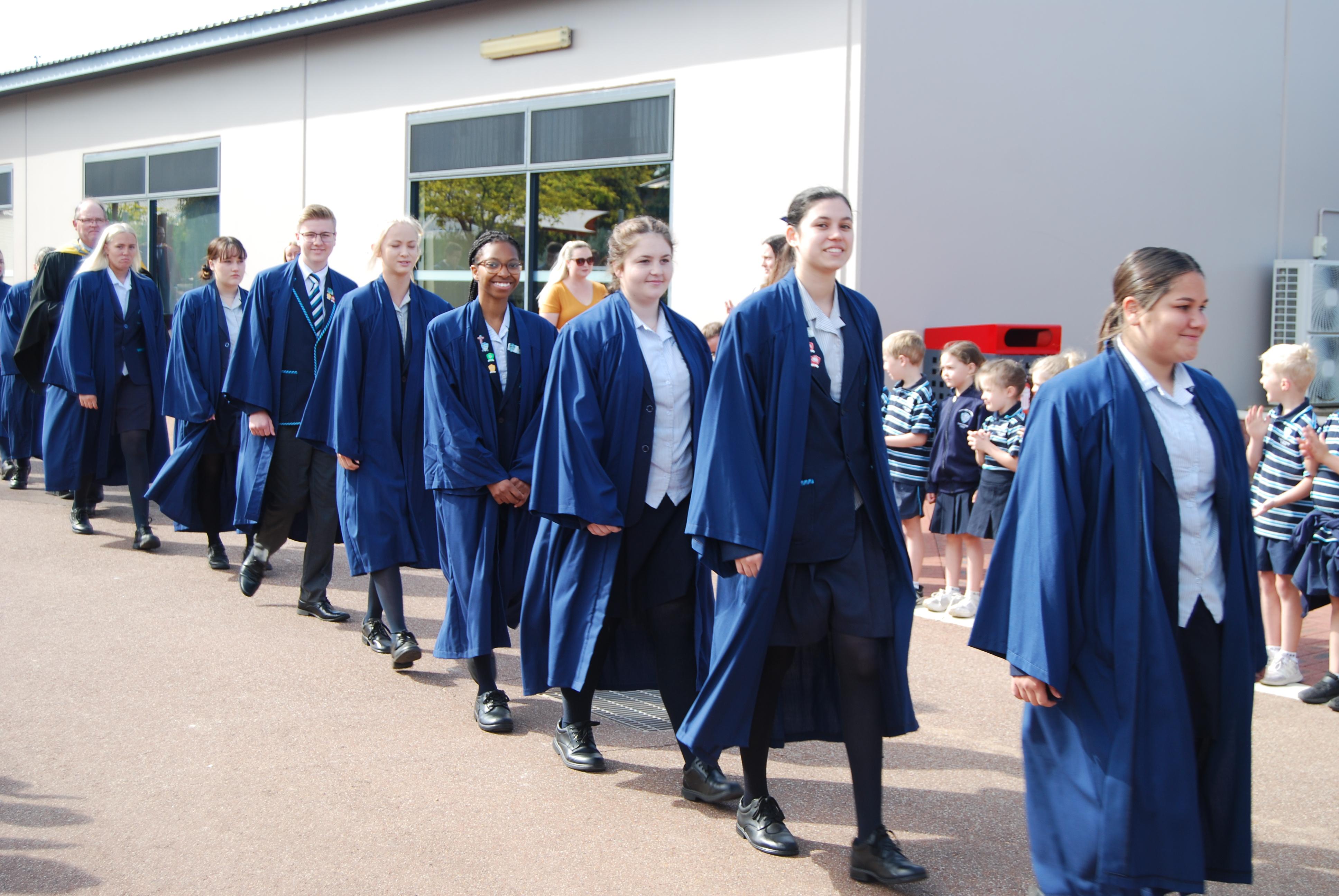 Our whole school lined "The Street" and cheered and applauded the Year 12's as they walked the guard of honour. The formalities then got underway with the school drummers leading the procession of students and teachers into the assembly. Hosted by Mr Jenzen, Deputy Principal, the assembly saw the blessing of the certificates by Reverend David Bradury, presentation of graduation sash and certificates to the students, an address to the graduates by Mr Krokosz, Head of Secondary school, an amazing speech full of words of wisdom and encouragement which they can take with them through life, and an amazing rendition of "Bohemian Rhapsody" by some of our Music students. All of the families were there to celebrate with their child and it was a very proud day for everyone.