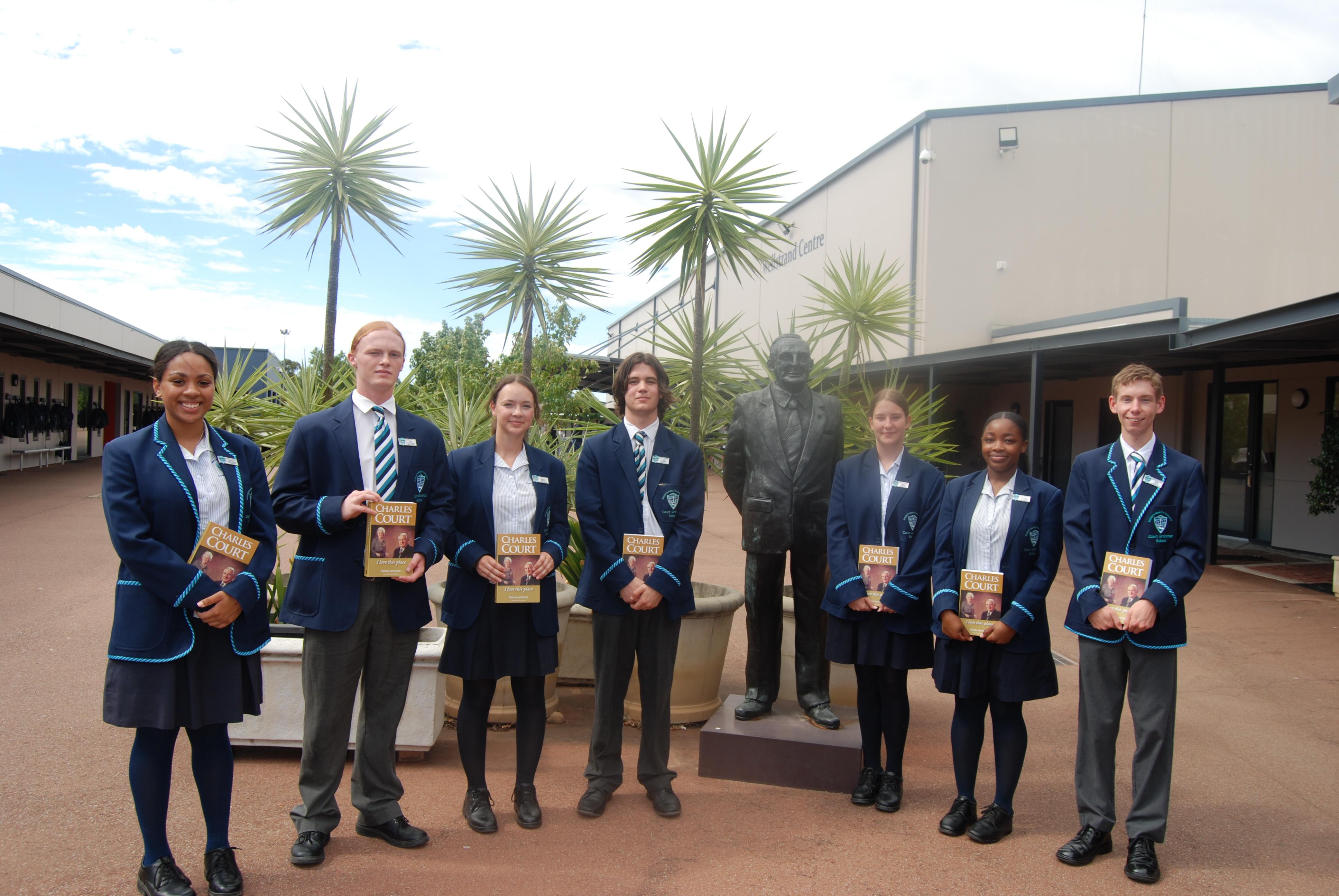 Below are some photos taken from today's formalities, which include photos of the Court family alongside the statue of our school's namesake, Sir Charles Court.